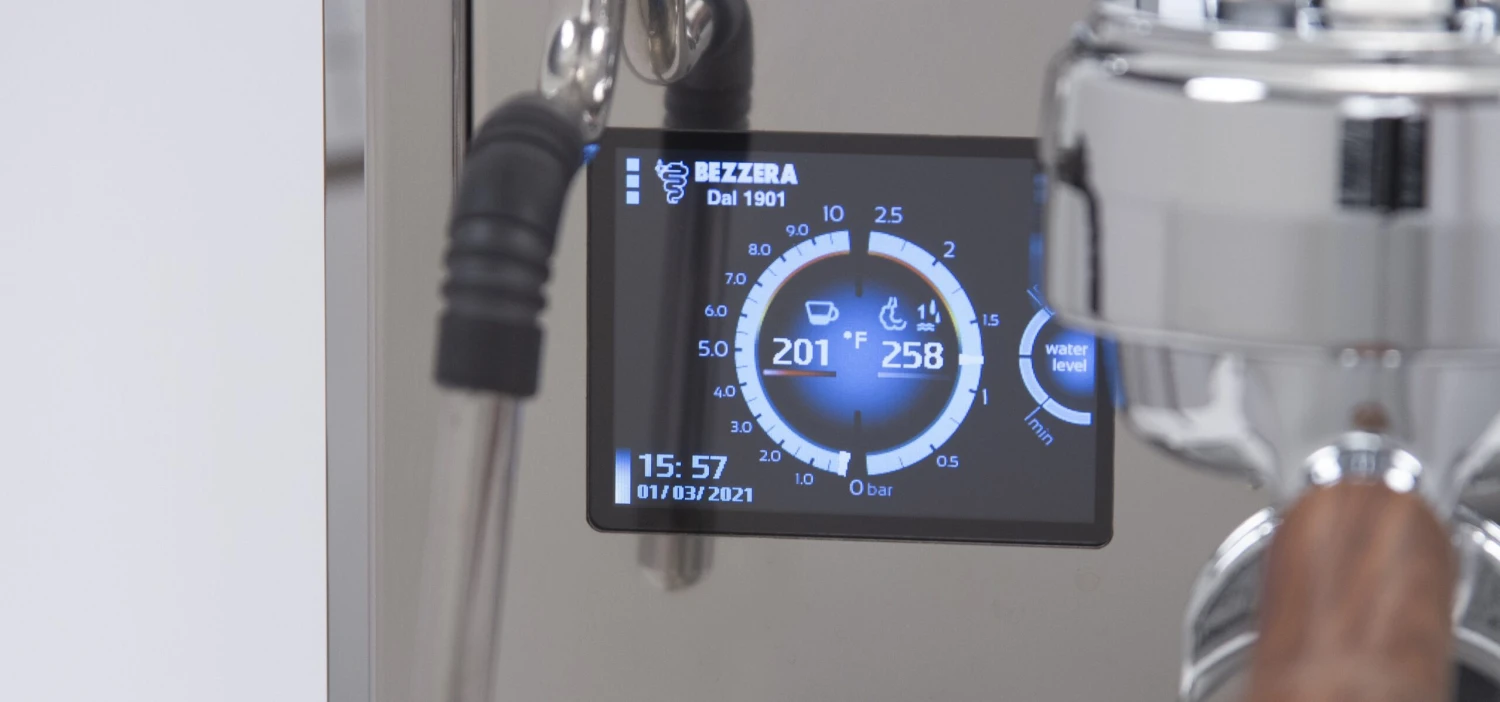 The DUO DE is a true marvel that blends tradition with modern elements for a painless brewing experience that doesn’t disappoint. Just like on the Matrix DE model, using the intuitive touch screen display you can control the brew and steam boiler temperatures by adjusting their respective PIDs, all the while, a third PID automatically regulates the temperature in Bezzera’s specially designed, electronically heated group head. This is a step up from the Matrix and DUO MN models.