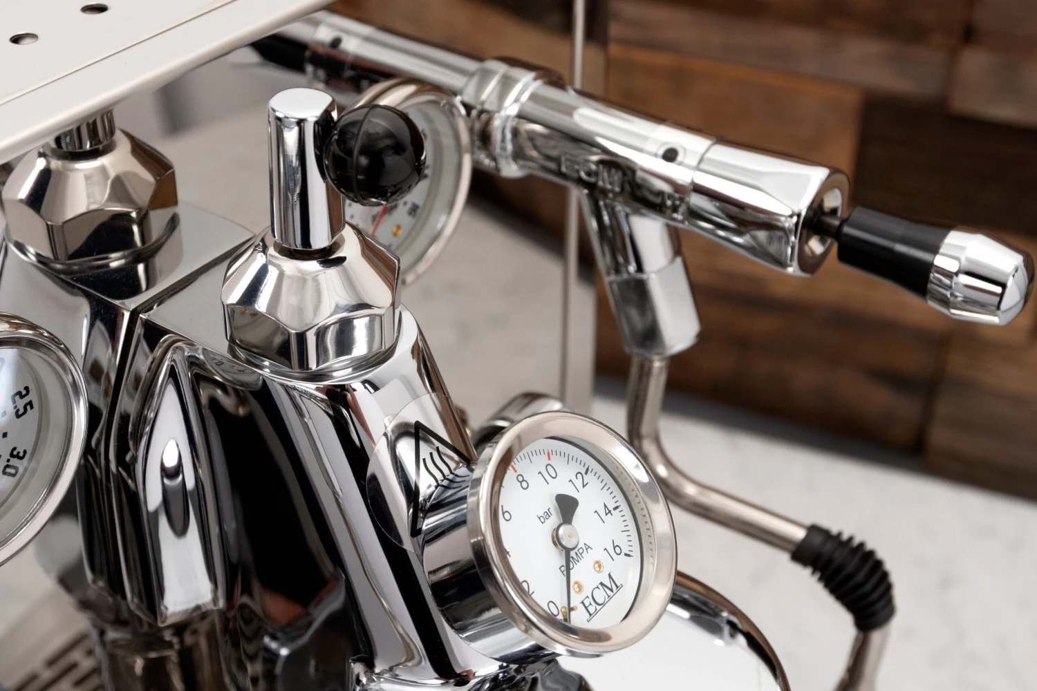 Less obvious advantages can be found in the iconic E61 brew group, which ECM has updated with stainless-steel internal components, as well as a single top cap for a cleaner aesthetic that other machines lack. These stainless-steel internals add much greater durability and resistance to calcium build-up for more straightforward maintenance, streamlining the experience of owning an espresso machine overall.