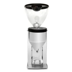 The Mazzer Kony is stepless, meaning it can be adjusted to a virtually infinite degree by turning the collar in small amounts. Although the Kony is capable of producing coarse or fine grinds, in a cafe environment it’s just impractical to use one grinder for both jobs. Best to let the Kony grind the espresso, and get another grinder for drip and the like. The burrs are easy to access for cleaning, and calibrating them afterward is simple, too. If the Kony seems a bit small for use in your cafe, consider the supreme Royal; for home, the Mini or Mini P both feature a doser and small footprint.
