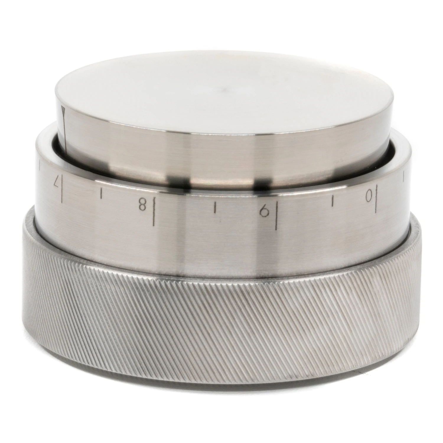 The New Levy Precision Espresso Tamping Tool in Walnut is an American-made product developed in the Saint Anthony Industries workshop. Meaning, you can expect reliability and professional craftsmanship. The New Levy Precision Espresso Tamping Tool in Matte Stainless Steel is complete with a matte stainless steel body that is entirely coated in a durable, industrial grade teflon. The teflon keeps your tool clean by repelling grime, thanks to its non-wetting, naturally oleophobic (oils) and hydrophobic (water) properties. In other words, the teflon acts as a non-stick coating, repelling oils, grounds, and fingerprints off your tools for extended durability.